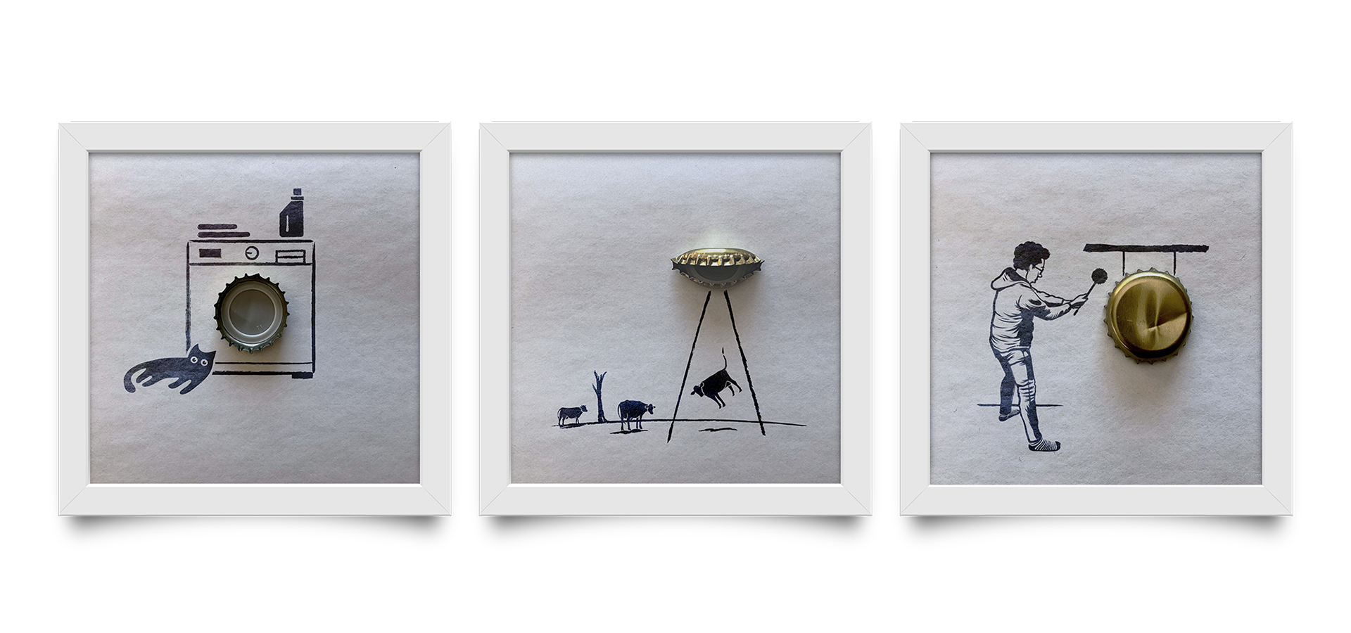 Lo abstracto es subjetivo a la visión del espectador y de esta premisa sale la serie de cuadros que usa como eje centra una simple: «Chapa» (Platillos en otras partes del mundo).